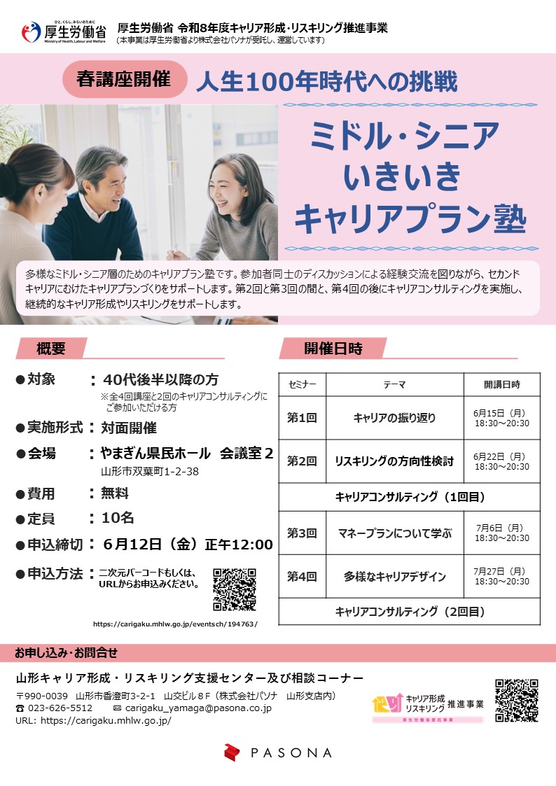 多様なミドル・シニア層のためのキャリアプラン塾です。